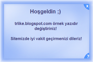 Sitenize ziyarete gelenleri karşılamak için en güzel yollardan biri olan bu hoşgeldiniz mesajı kodu sayesinde siteniz çok şık görünecek! Sitene ekle kodları!
